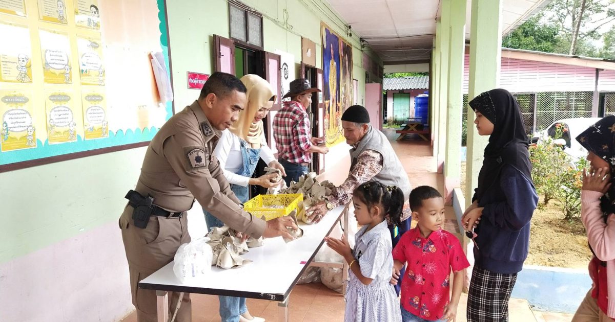 ผู้กำกับการสถานีตำรวจภูธรจะแนะแจกอาหารกลางวันเด็กนักเรียน โรงเรียนบ้านไอร์กรอส