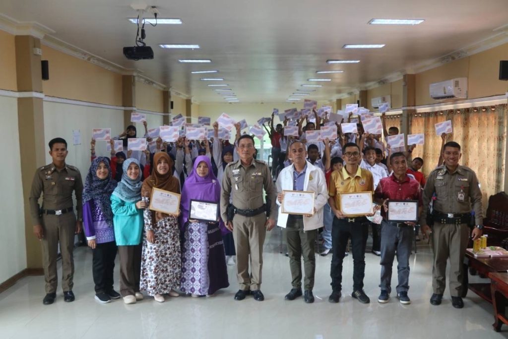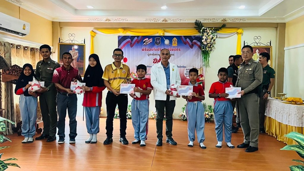 พิธีการมอบใบประกาศนียบัตรและปิดพิธี โครงการการศึกษาเพื่อต่อต้านการใช้ยาเสพติดในเด็กนักเรียน D.A.R.E. 23 สิงหาคม 2567 โดย Abdulloh / ข่าวประชาสัมพันธ์,ข่าวประชาสัมพันธ์,ข่าวประชาสัมพันธ์,ข่าวประชาสัมพันธ์,ข่าวฝากประชาสัมพันธ์ พิธีการมอบใบประกาศนียบัตรและปิดพิธีโครงการการศึกษาเพื่อต่อต้านการใช้ยาเสพติดในเด็กนักเรียน D.A.R.E.เมื่อวันที่ ๒๑ สิงหาคม ๒๕๖๗เวลา ๑๓.๓๐ น.พ.ต.อ.นราวี บินแวอารงผกก.สภ.จะแนะได้มอบหมายให้พ.ต.ท.สมศักดิ์ สุทธิประภารอง ผกก. ป.สภ.จะแนะเป็นประธานในพิธีการมอบใบประกาศนียบัตรและปิดพิธี โครงการการศึกษาเพื่อต่อต้านการใช้ยาเสพติดในเด็กนักเรียน D.A.R.E. ประจำภาคเรียนที่ ๑ ปีการศึกษา ๒๕๖๗ โดยมี จ.ส.ต.วชิรนันท์ อามิง ผบ.หมู่(ป.) สภ.จะแนะ เป็นผู้กล่าวรายงาน พร้อมนี้ยังมี นายศักดิ์ดา กัลยาการณ์ ผอ.รร.บ้านจะแนะ, คณะครู ครูตำรวจ D.A.R.E. และ ชุด ตชส. สภ.จะแนะ เข้าร่วมพิธี ณ ห้องประชุมโรงเรียนบ้านจะแนะ ต.จะแนะ อ.จะแนะ จว.นราธิวาส#DARETHAILAND 👮🏻♂️🇹🇭 FacebookFacebookXXLINELine