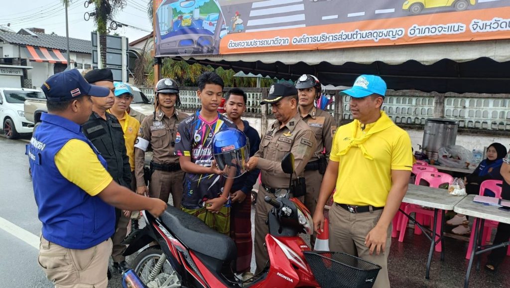 ปฏิบัติหน้าที่ รองผบ.มว.ฉก.นปพ.นธ.41 พร้อมด้วย ข้าราชการตำรวจจิตอาสา สภ.จะแนะ และข่าย จร.สภ.จะแนะ ดำเนินกิจกรรมจิตอาสาจารจร ประชาสัมพันธ์รณรงค์ขับขี่ปลอดภัย สวมหมวกนิรภัยเพื่อลดอุบัติเหตุจารจรทางบก ในช่วงเทศกาลปีใหม่ 2568 ได้ทำการแจกจ่ายหมวกนิรภัยที่ได้รับมอบจากสำนักงานตำรวจแห่งชาติให้แก่ ประชาชนที่สัญจรด้วยรถจักรยานยนต์โดยไม่ได้สวมใส่หมวกนิรภัย พร้อมทั้งแนะนำวิธีการเลือกหมวกนิรภัยที่ถูกต้องจะต้องมีเครื่องหมาย มอก. และอธิบายการสวมใส่หมวกนิรภัยที่ถูกต้องตามหลักความปลอดภัย