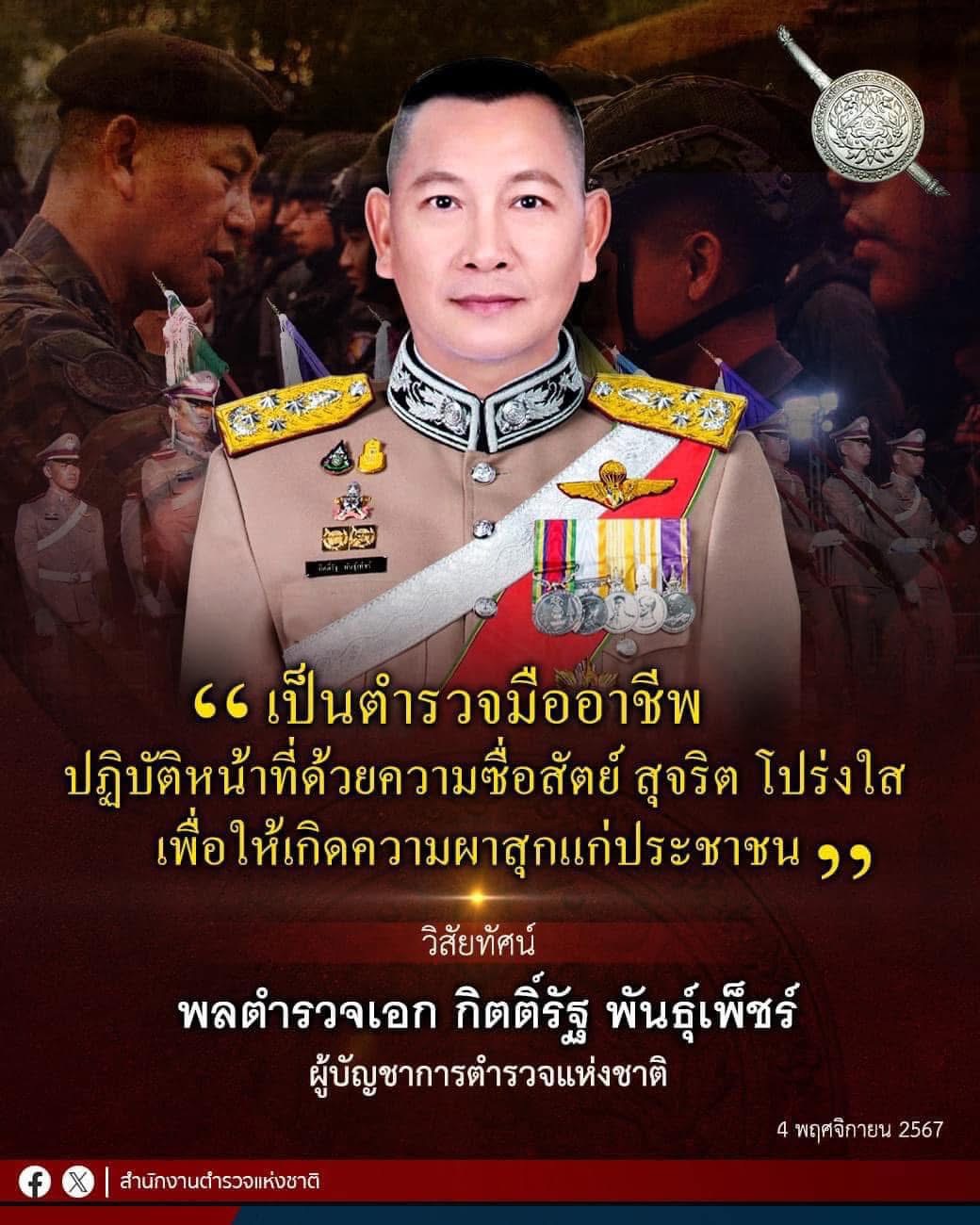 วิสัยทัศน์ ผบ.ตร. “ เป็นตำรวจมืออาชีพปฏิบัติหน้าที่ด้วยความซื่อสัตย์ สุจริต โปร่งใสเพื่อให้เกิดความผ