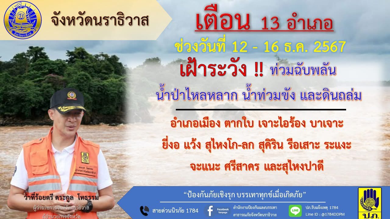 ปภ. แจ้งเตือน 13 อำเภอ🚨เฝ้าระวัง‼️น้ำท่วมฉับพลัน น้ำป่าไหลหลาก น้ำท่วมขัง และดินโคลนถล่ม ในช่วงวันที