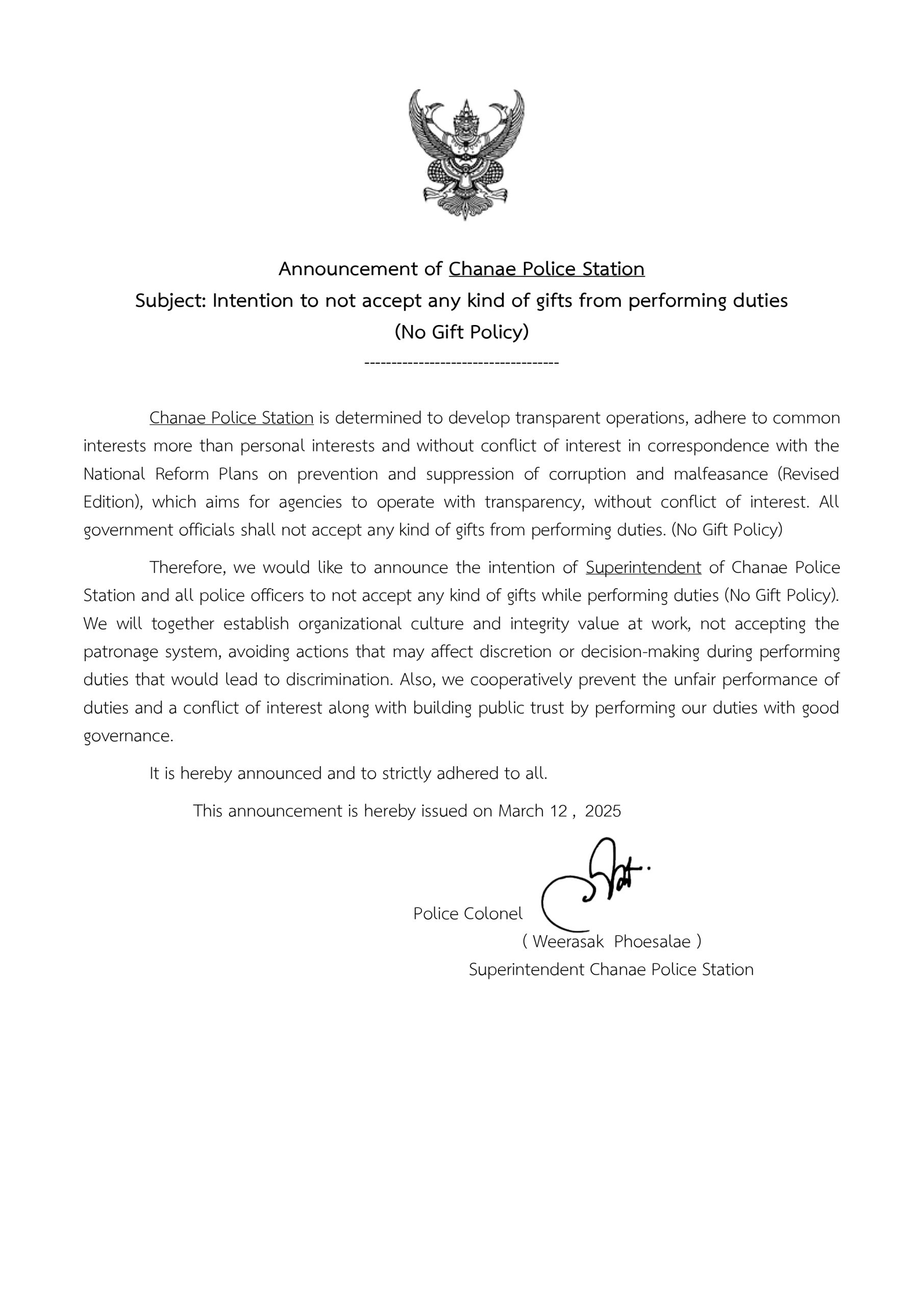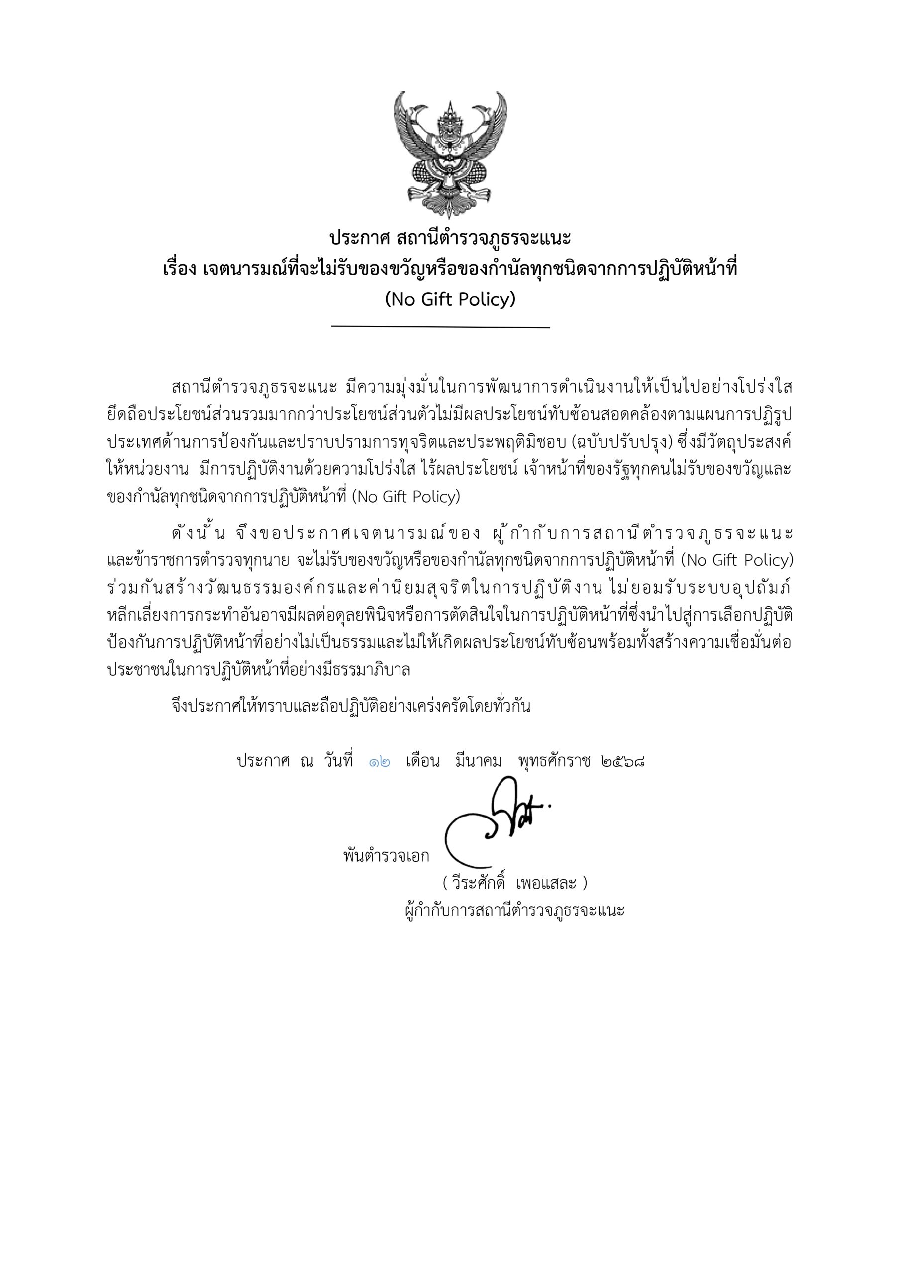 เรียนผู้บังคับบัญชา สภ.จะแนะวันที่ ๒๕ มีนาคม ๒๕๖๘เวลา ๑๕.๔๐ น.ภายใต้อำนวยการของว่าที่ พ.ต.อ.วีรศักดิ