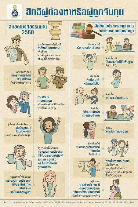 (13) สิทธิได้รับการจัดหาทนายกรณีคดีมีอัตราโทษประหารชีวิต หรือผู้ต้องหามีอายุไม่เกินสิบแปดปี และในคดีที่มีอัตราโทษจำคุกหากผู้ต้องหาไม่มีทนายและต้องการทนาย พนักงานสอบสวนต้องจัดหาทนายให้ (ป.วิ.อาญา มาตรา 134/1)